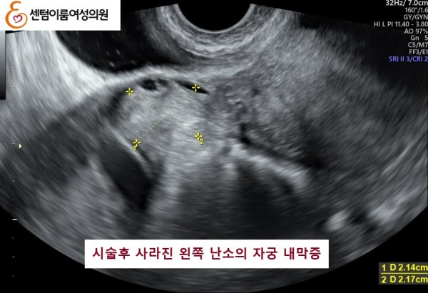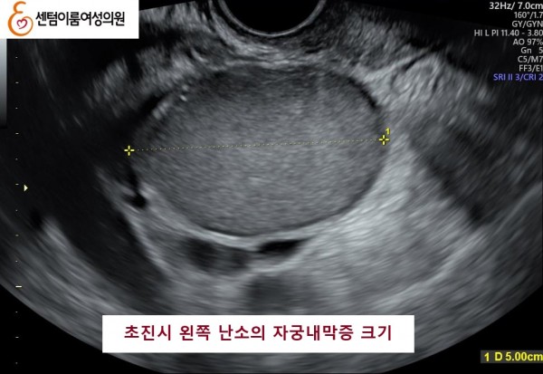 2025.5.31 본원에 내원시 왼쪽 자궁 내막종이 5cm 정도 였습니다.