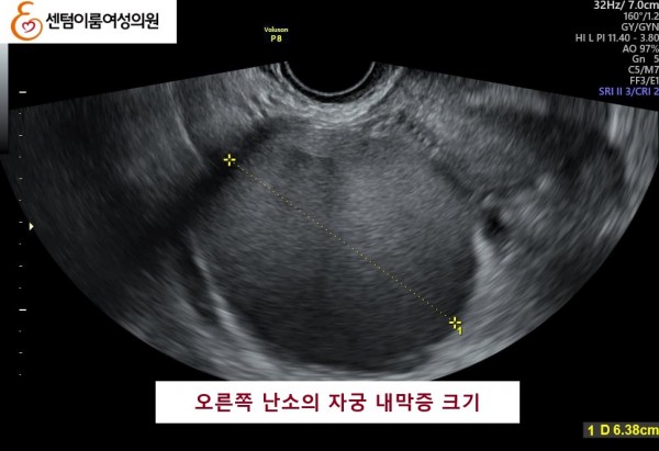 2024.12월 본원 내원시 오른쪽 난소에 자궁 내막증이 있었고, 자궁 내막 또한 얇았습니다.