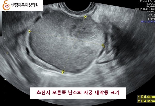 2025.8.12 본원에 내원시 오른쪽 자궁 내막종이 5.5cm 정도 였습니다.