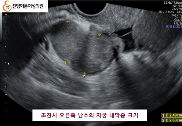오른쪽 자궁 내막종이 5cm , 왼쪽 자궁 내막종이 4cm정도 였습니다.