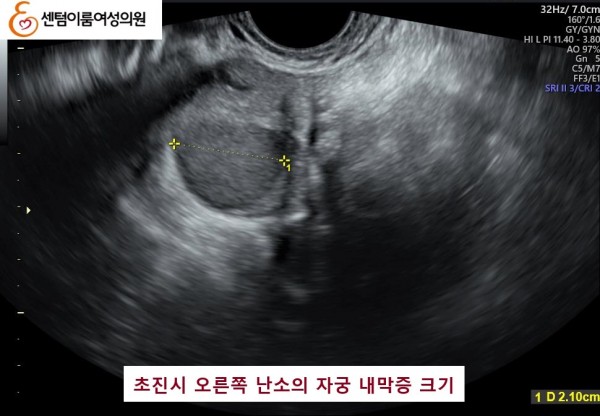 오른쪽 , 왼쪽 자궁 내막종이 2cm,  5cm 정도 였습니다.